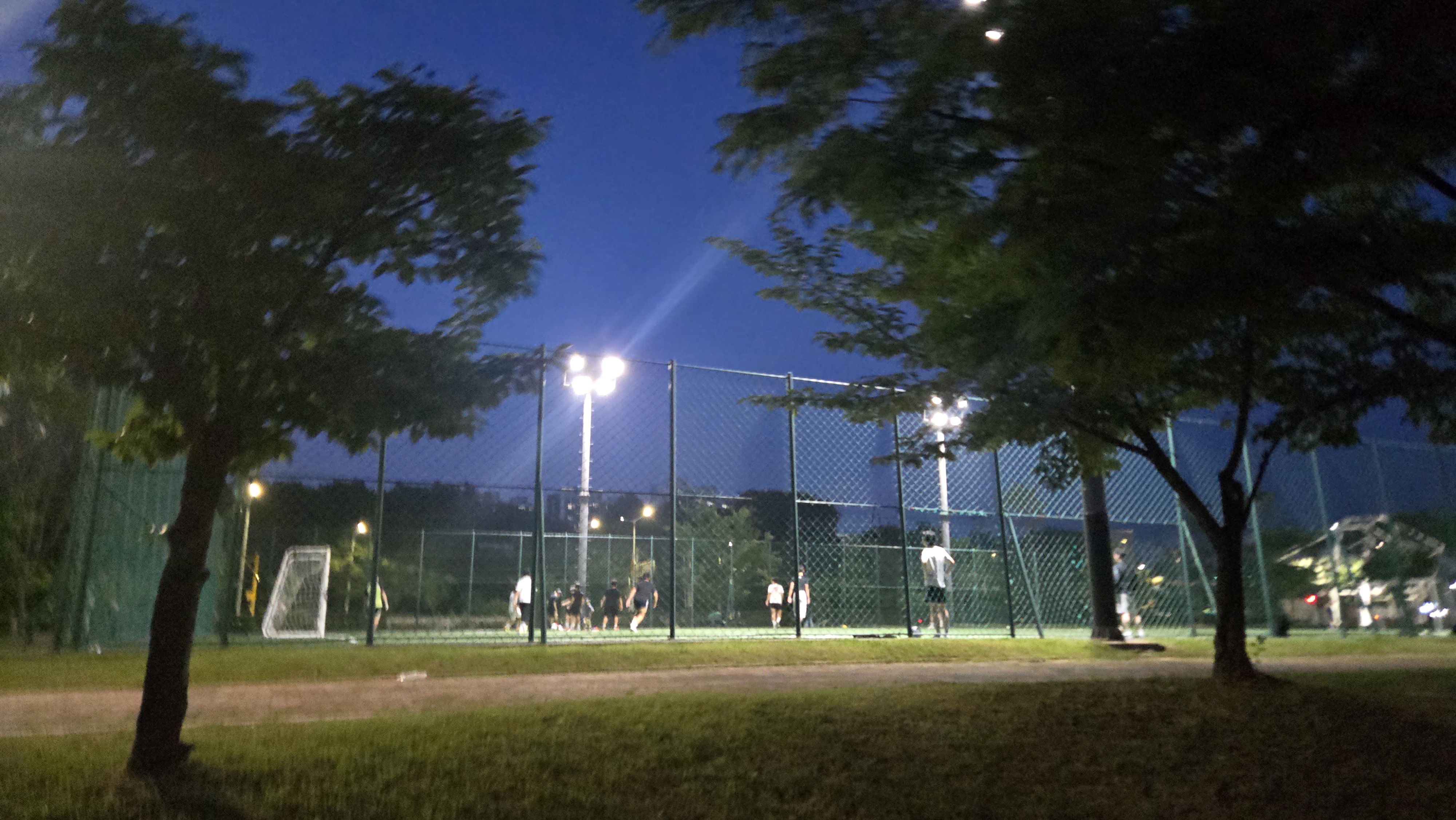 공원 한편에는 축구장과 간단한 야외 운동기구도 설치되어 있어 가벼운 근력운동이나 스트레칭에도 적합합니다.