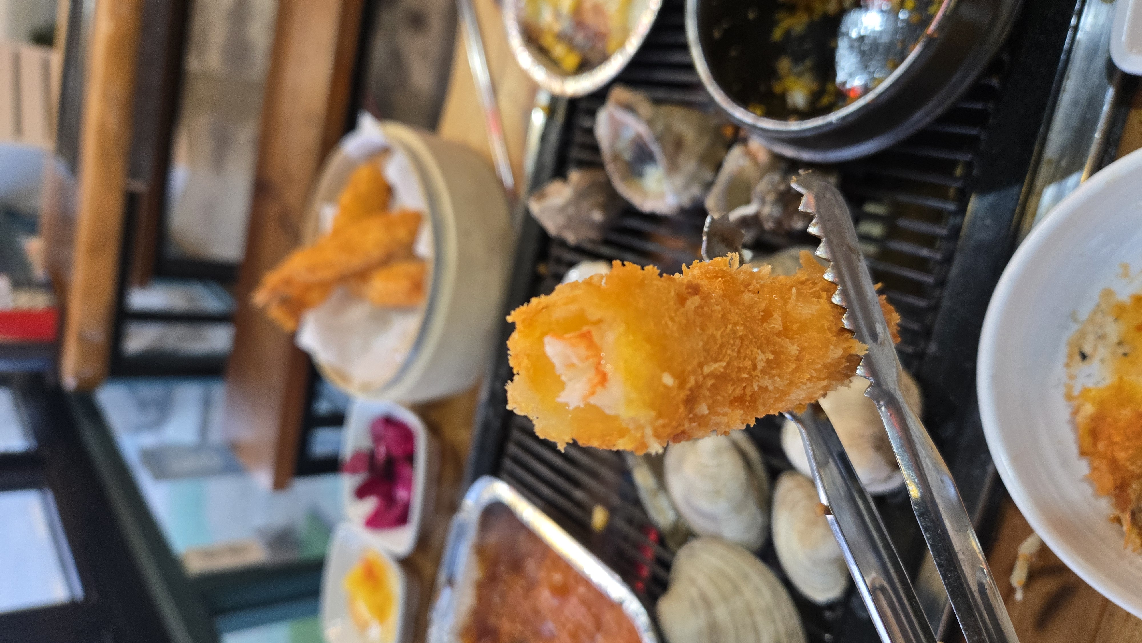 조개구이만으로는 아쉬워서 사이드 메뉴로 새우튀김과 라면도 함께 주문했다. 라면은 조개 육수에 끓여줘서 그런지 국물이 더 시원하고 깊은 맛이 났다.